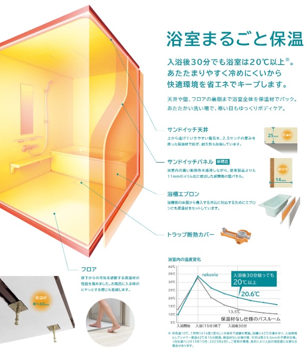 浴槽もお湯も暖かさが続くので、冬の入浴も快適になるはずです。