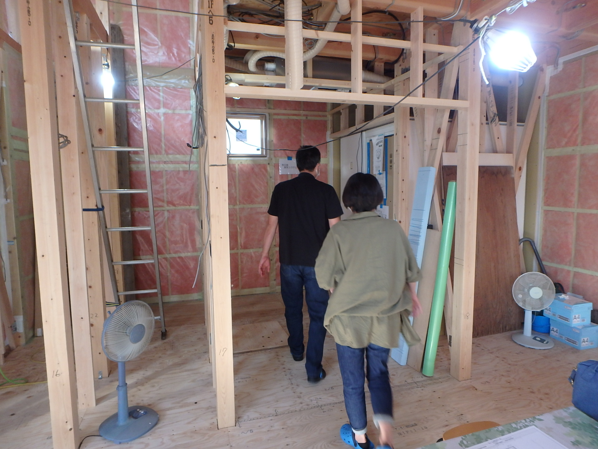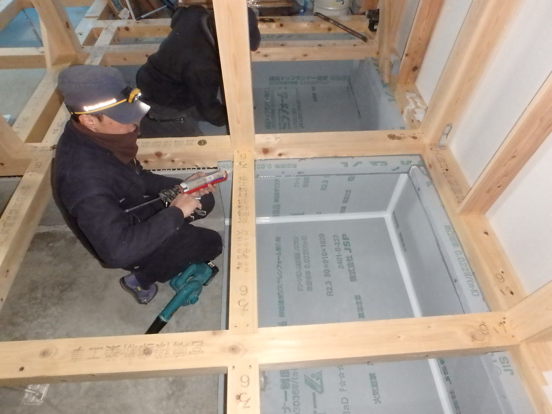 袋無しグラスウールを使い、気密シートをしっかりと張った施工をお見せします。