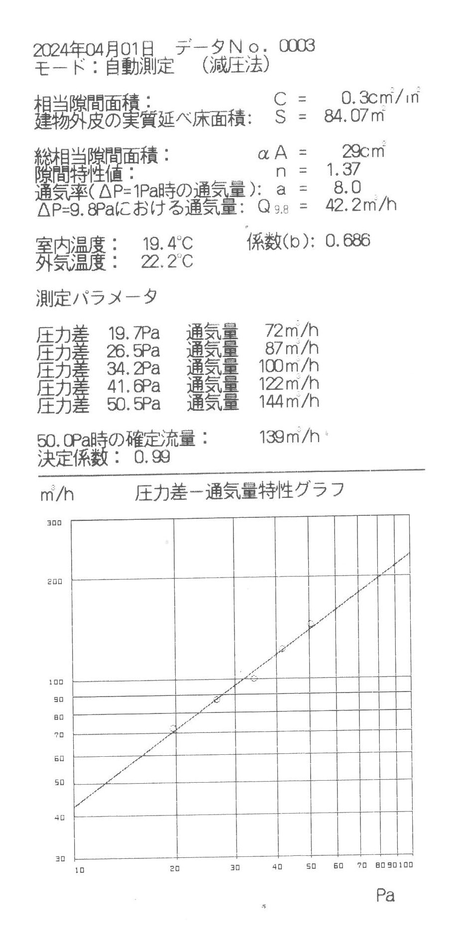 4月1日に多治見市小泉町M様邸気密測定をしました。