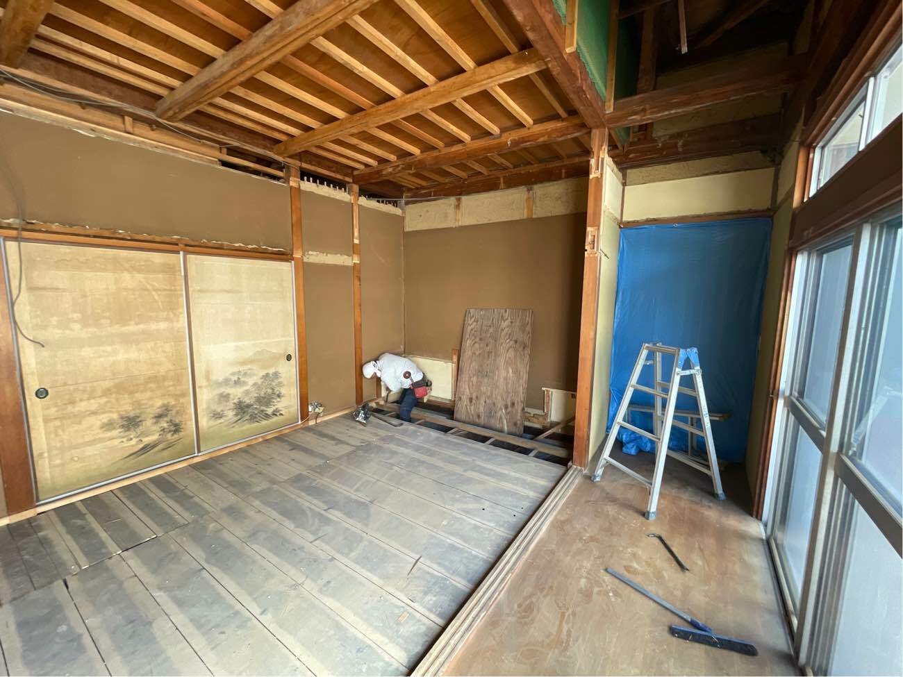 K様邸は50年前に建てられた建物ですので、天井、壁、床には断熱材が入っていません。