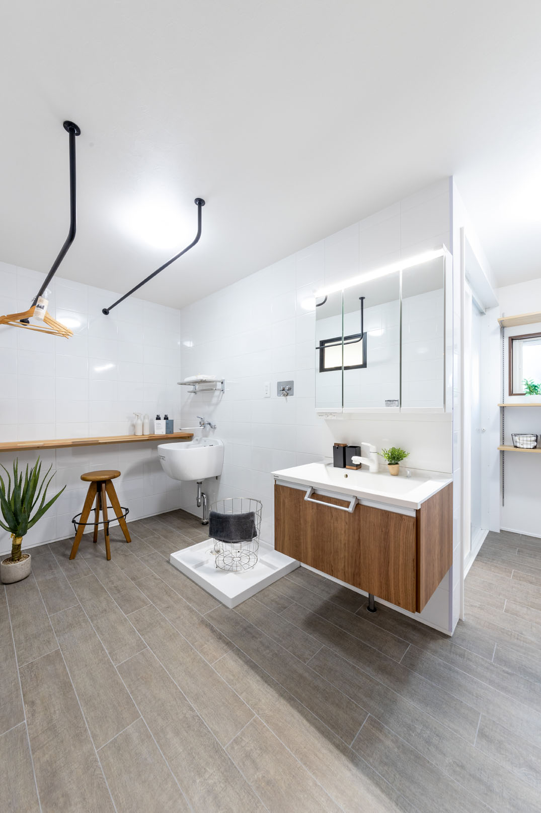 また、洗濯機置き場にカウンターをつくれば、たたむ、アイロンをかけるといった作業もその場でできて、時短につながります。