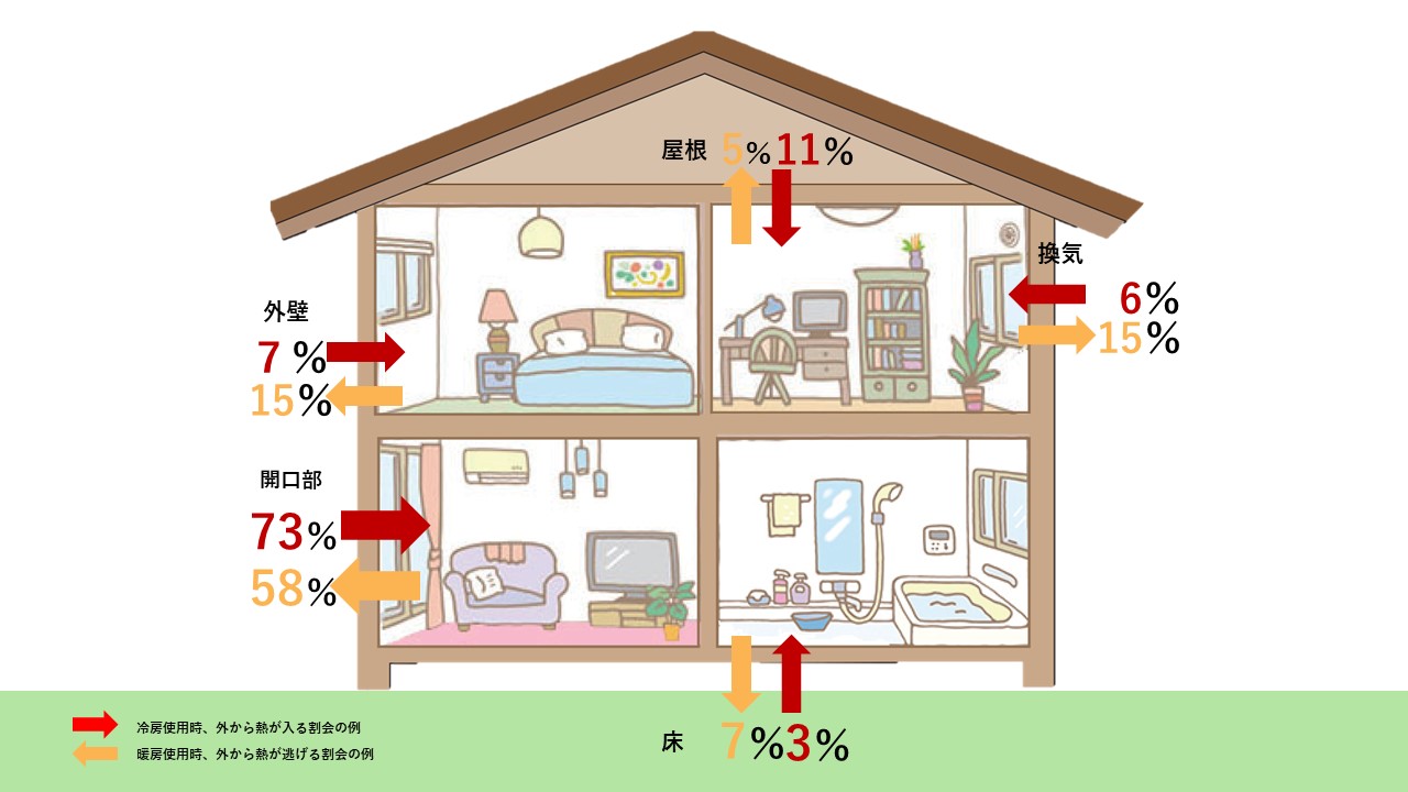 夏に室内が暑くなるのは、屋根や外壁、窓などから熱が侵入してくるからです。