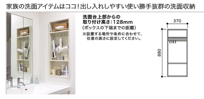 洗面室ではドライヤーやヘアケア用品などをしまったり、タオル置き場としても使えます。