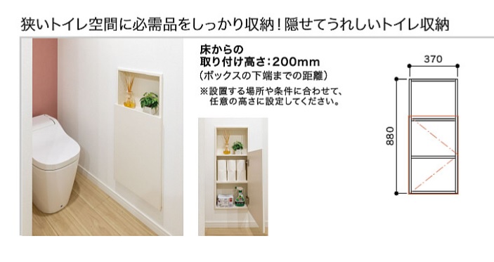 壁厚収納は、狭くて物が多いトイレや洗面室などで特に活躍します。