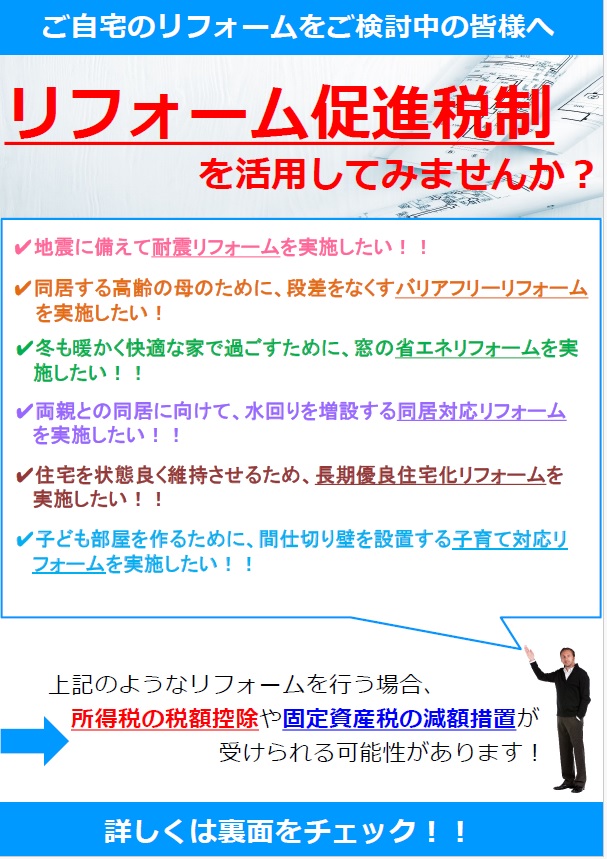 リフォームをして、税金(所得税)が戻ってくる? そのためには、「増改築等工事証明書」が必要となってきます。 ご自身がお住まいになっている住宅に対して、特定のリフォームを行った場合、ご自身が支払いになっている […]