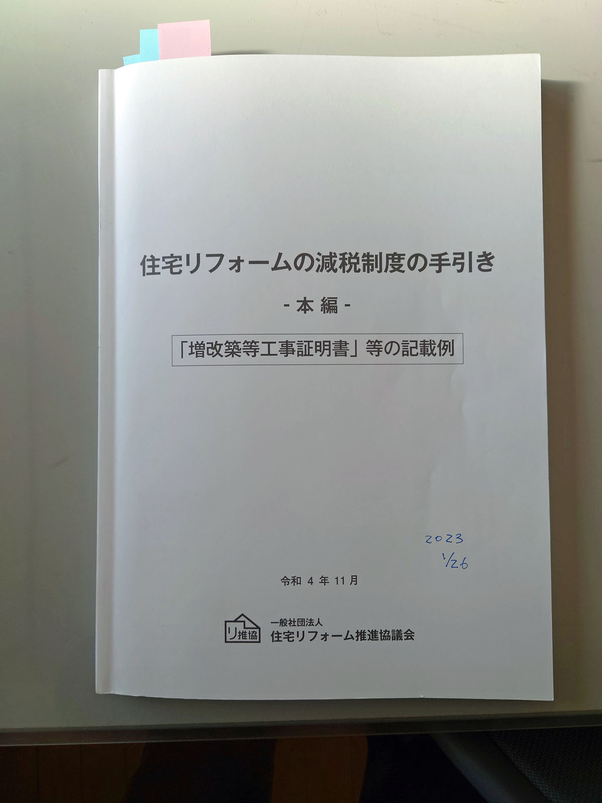 リフォーム工事で減税ができます!!その1 増改築等工事証明書