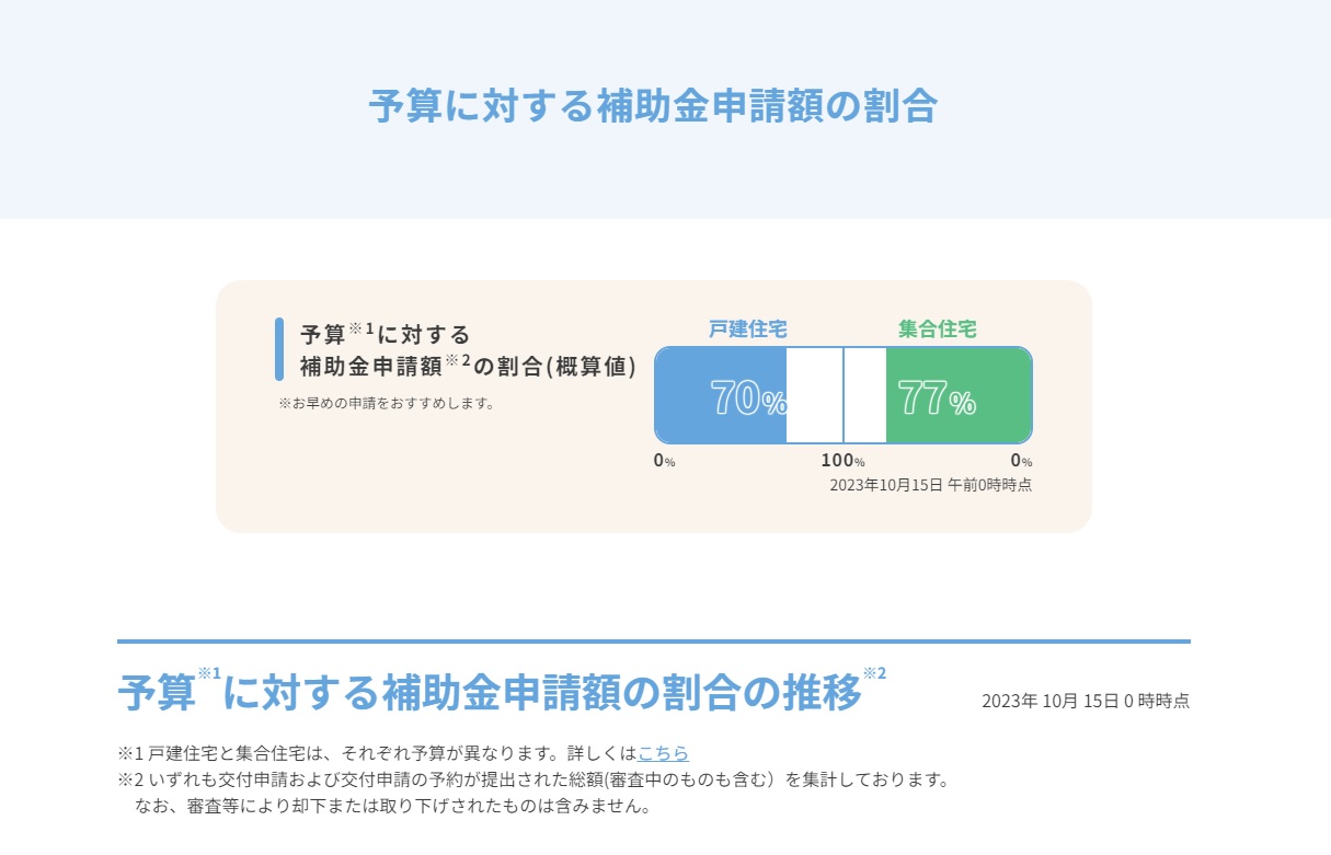 先進的窓リノベ事業の補助金達成率は70%となりました