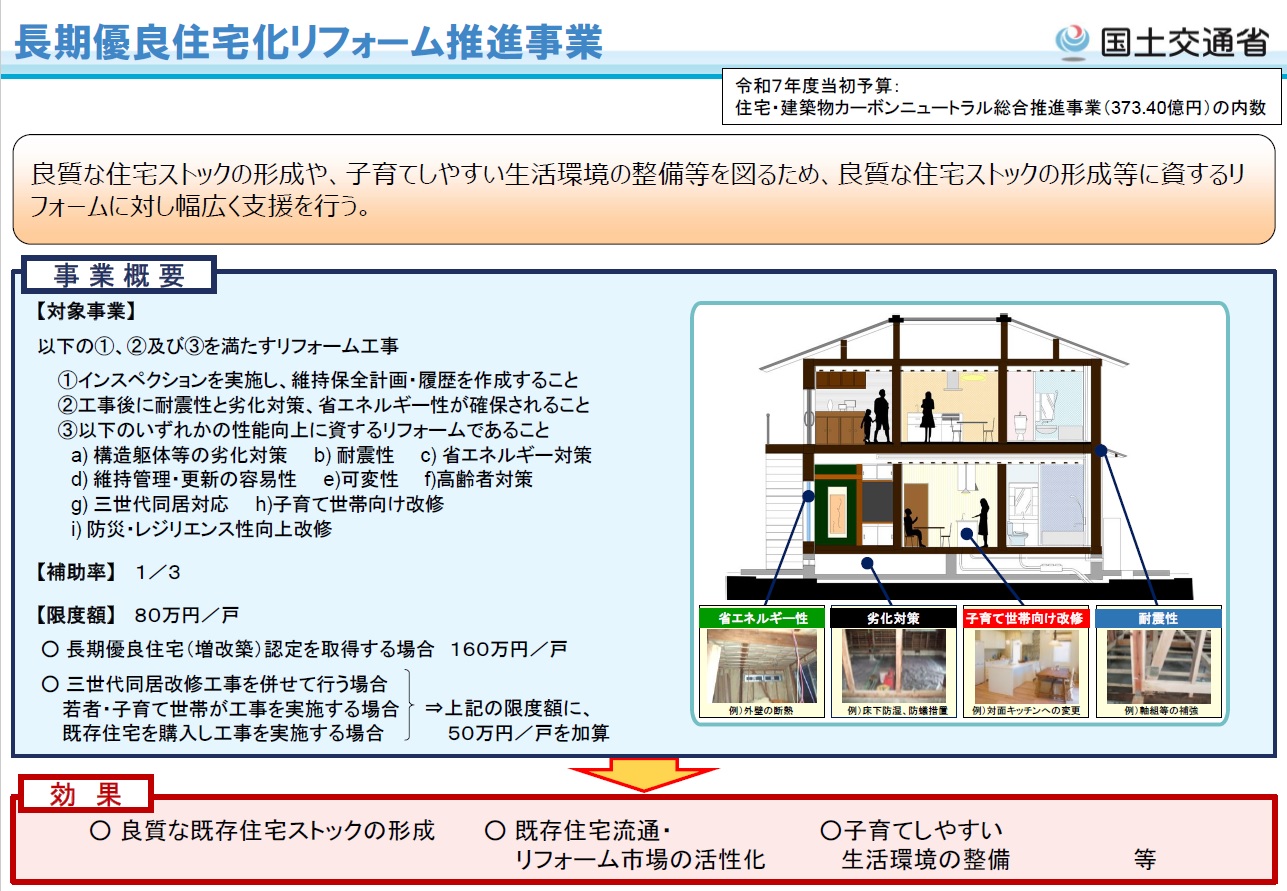 2025年度も長期優良住宅化リフォーム推進事業があります