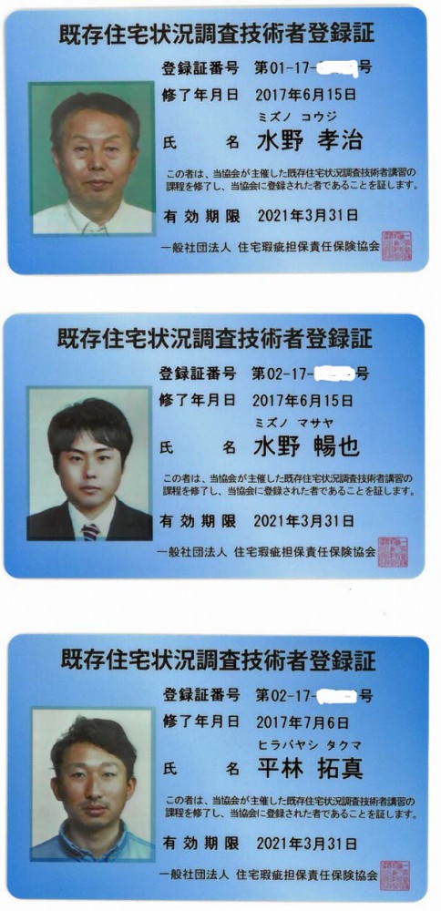 既存住宅現況検査技術者登録証が届きました。 私と暢也と平林君の3名が既存住宅現況検査技術者です。 宅建業法改正に合わせ、日本のインスペクターは 建築士免許保持者に絞られつつあるように感じます。 […]