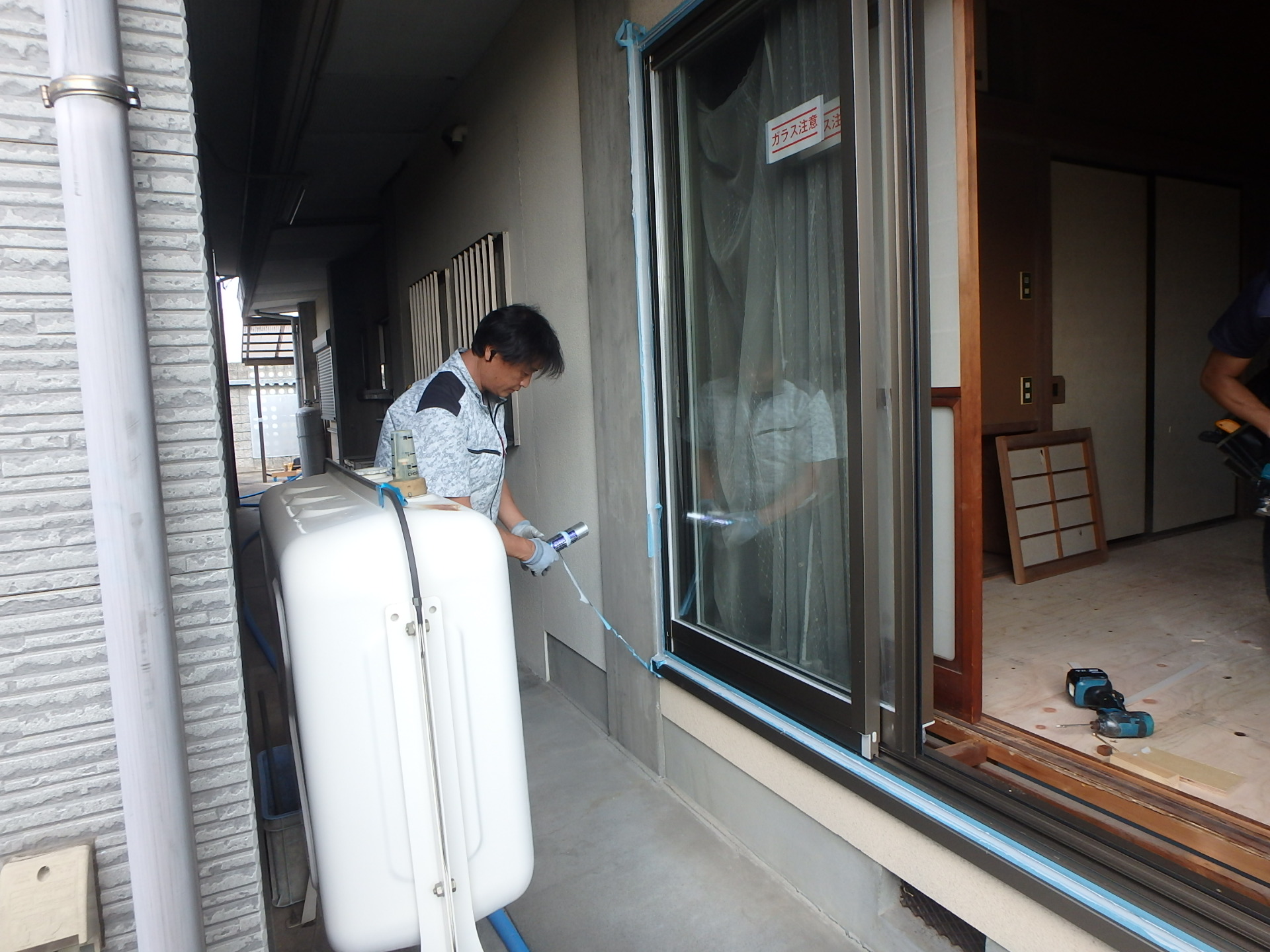 4.新しい枠と既存の壁をシーリング処理します。