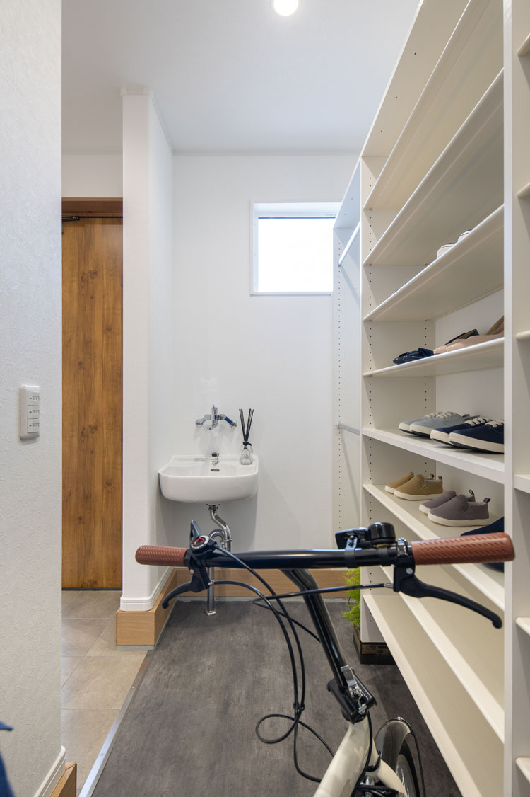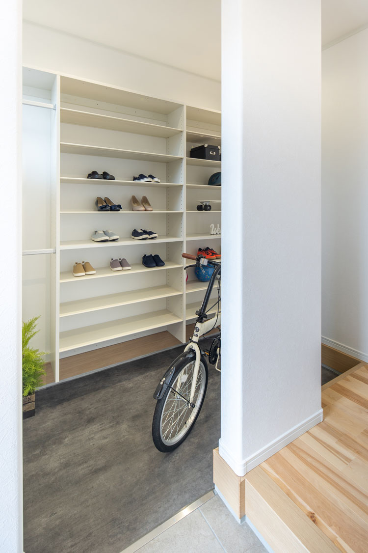 玄関につながった土間なら、収納をかねた実用的な使い方もおすすめです。