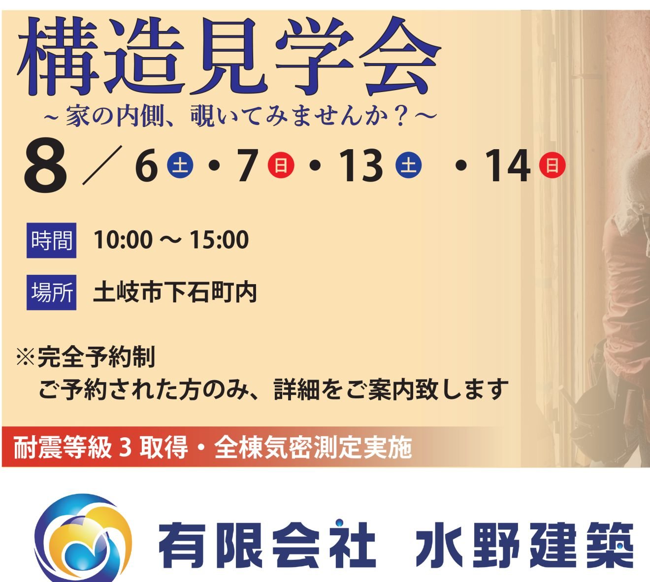開催日時:8/6㈯・7㈰・13㈯・14㈰ 10時00分から15時00分 見学時間45分程度 開催場所:土岐市下石町内 ※ご予約された方にのみ詳細をお伝えいたします。 お家づくりの […]