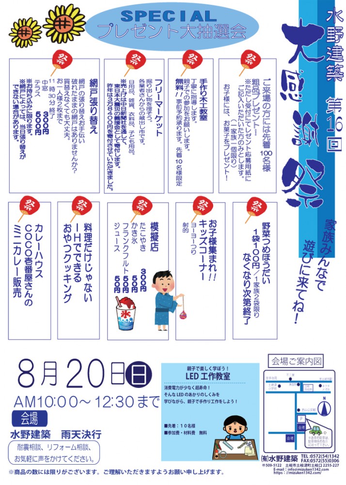 8月20日(日)は第16回水野建築感謝祭です。
