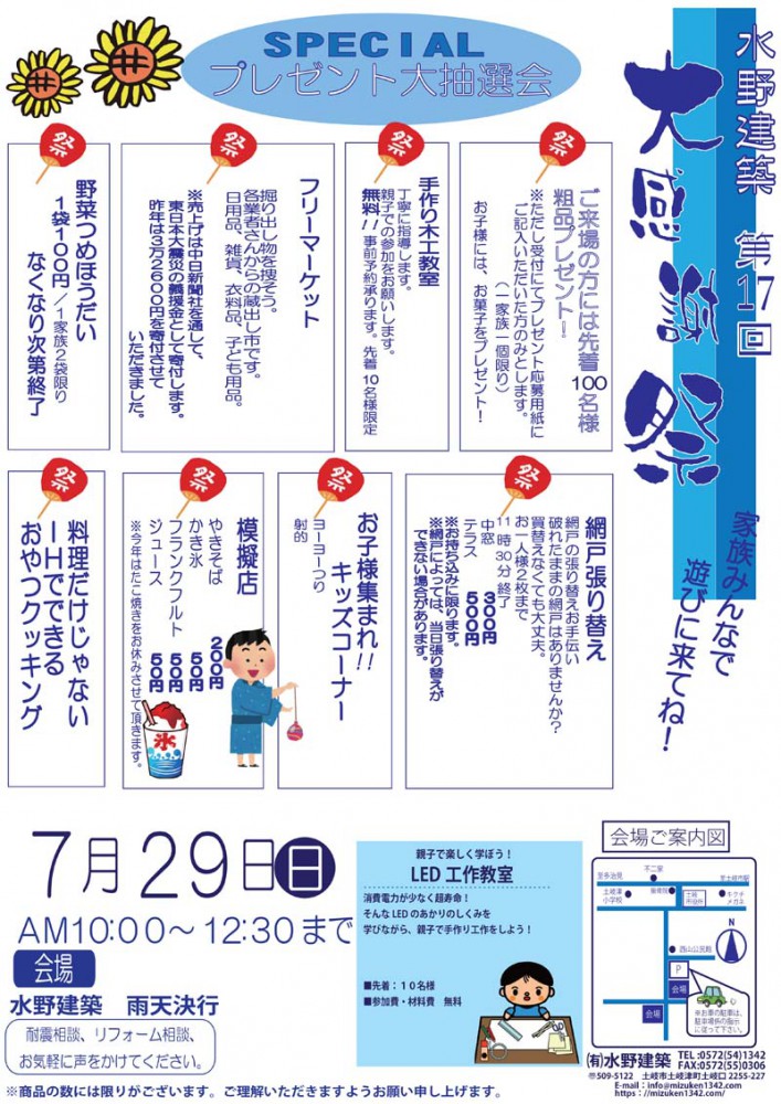 第15回水野建築感謝祭のチラシができてきました。