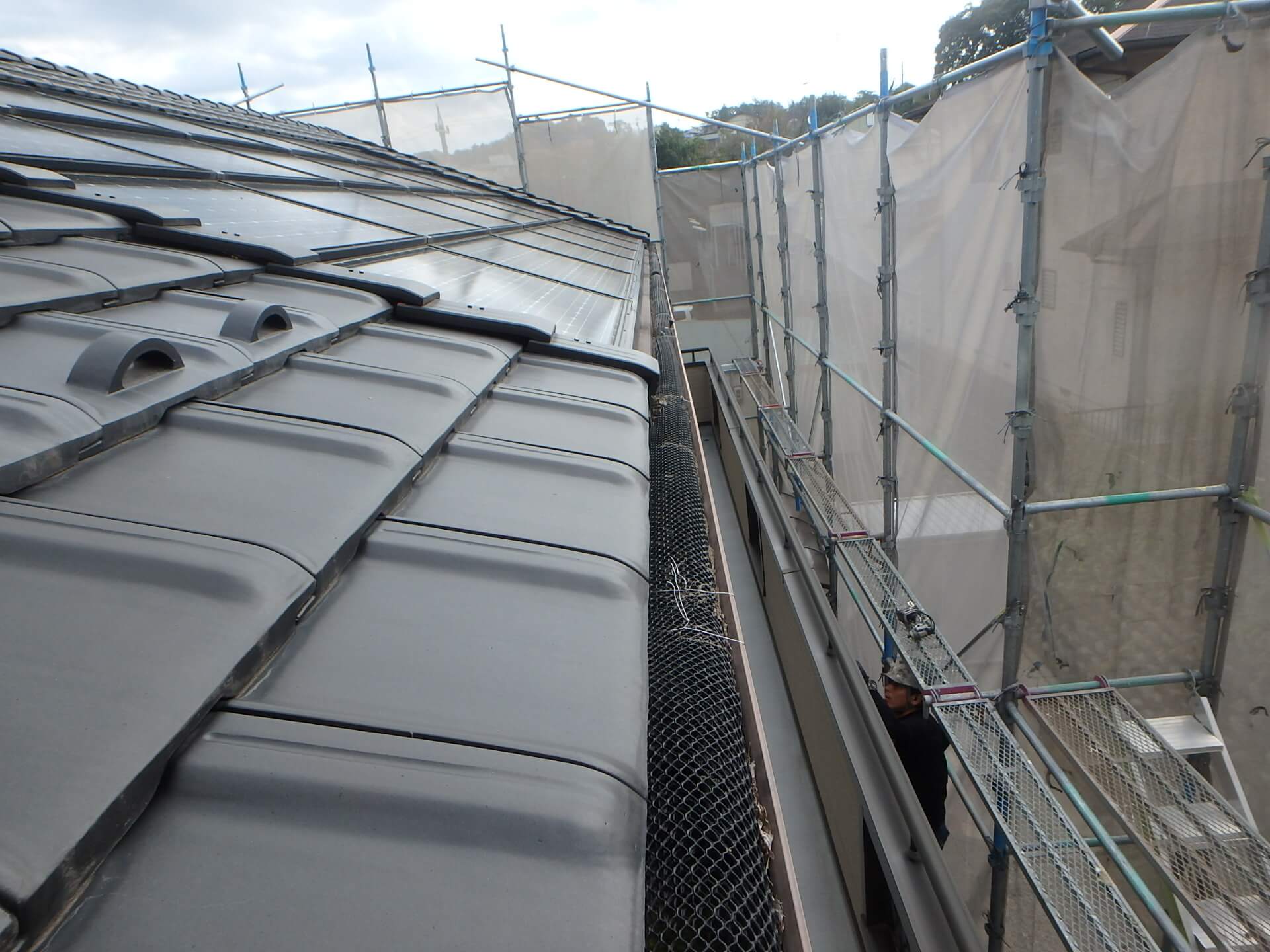 S様に写真を見て頂いて、北面にも「落ち葉ネット」を取付けの承諾を頂きました。