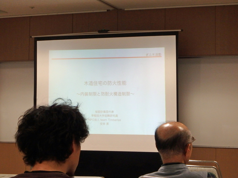 安井先生の話の中で、火災実験を行い、現行の建築基準法上は耐火建築物とすることが要求されている