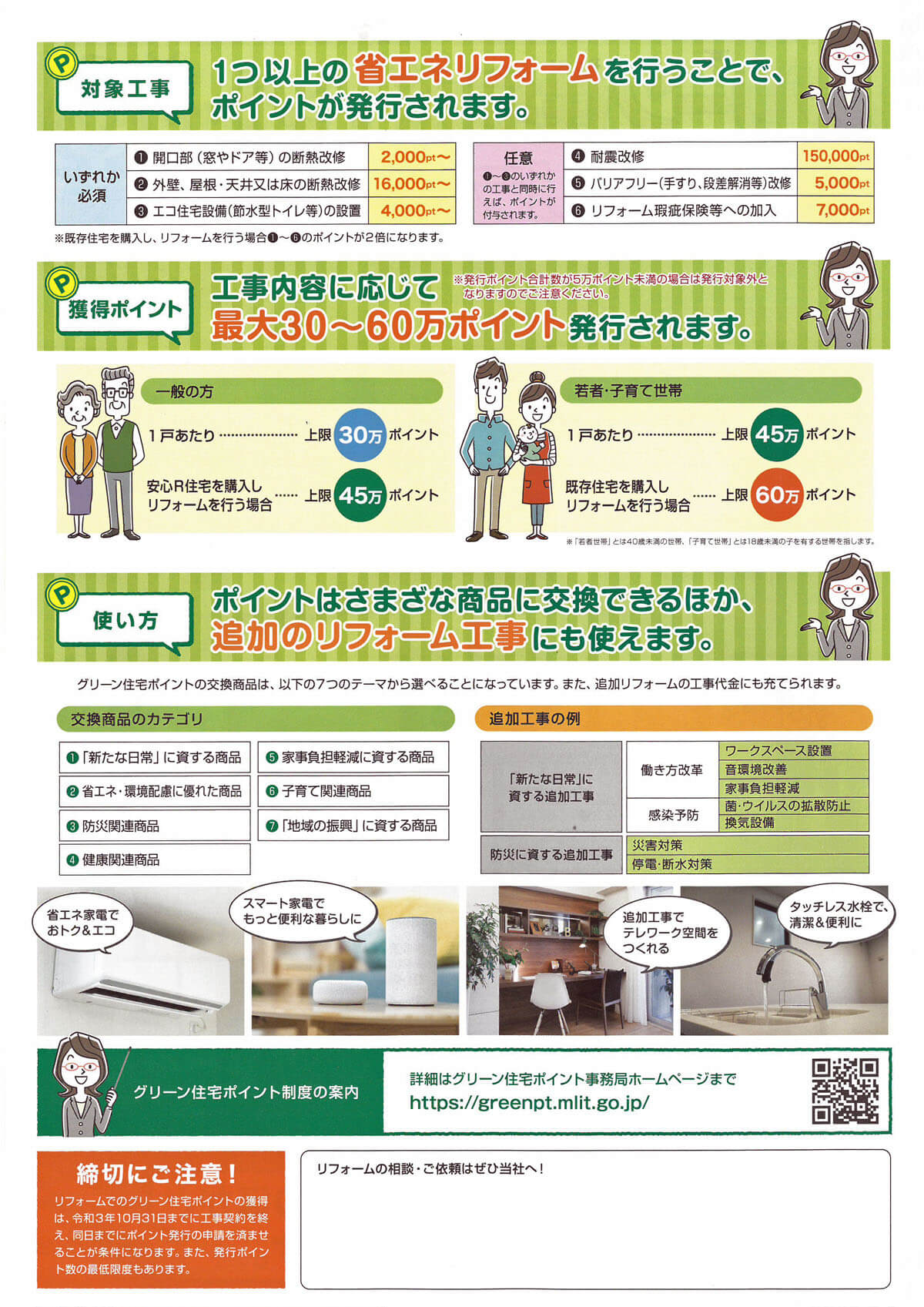 「グリーンポイント制度」についての詳しいことは、お気軽にご相談ください。