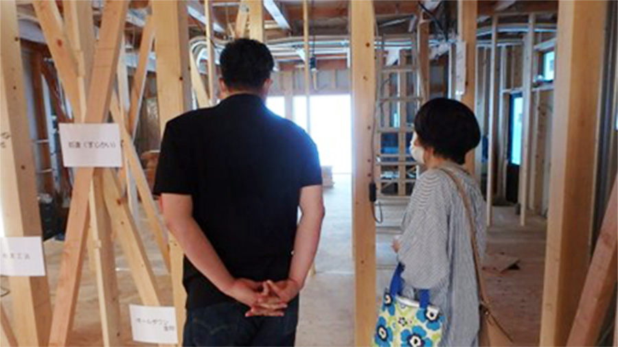 現場には、大工さんの様子、材料の扱い方、現場の整理整頓の状況など、家づくりそのものが鏡のように現れます。だからこそ、現場を実際に見ていただくことで、お客様に安心していただけると考えて、この取り組みをしています。