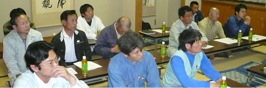 水野建築協力業者会では、お客様に満足頂ける家づくりを追求するため、協力業者様との定例会議と勉強会を行っています。最新の技術や現場での反省を踏まえた意見等を交換して、常に品質の向上に努めています。