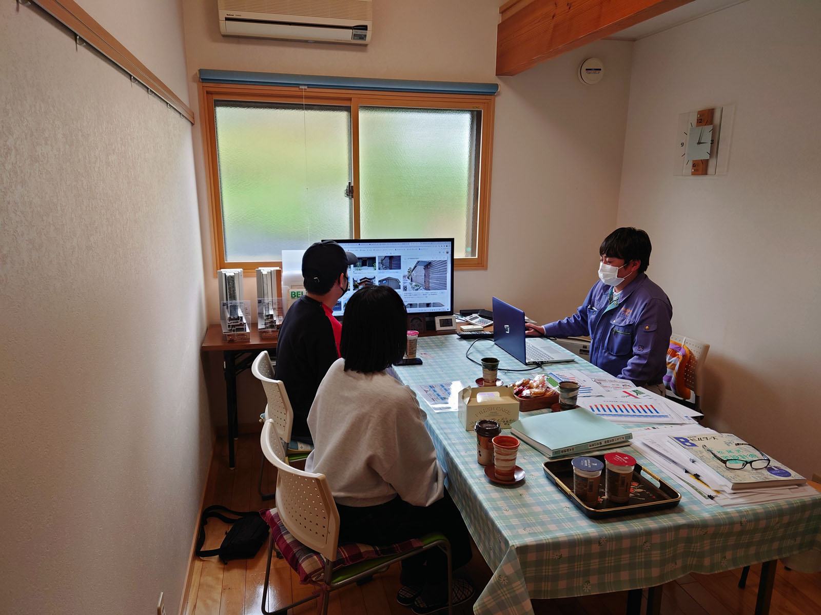 土地からのお客様が多かったので、土地探索ソフトを利用しての土地案内は食いつくように画面を見られていました。30分程度は土地の話になっていました。