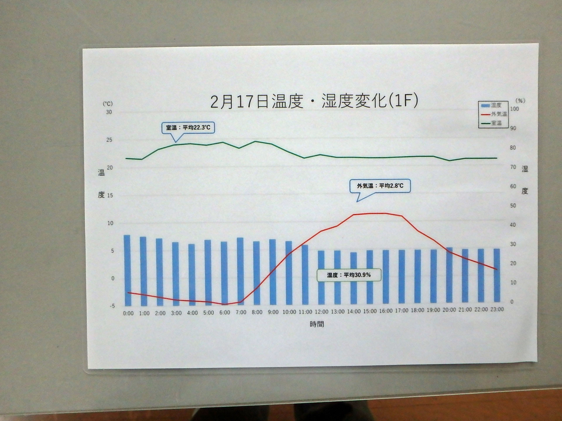 最後後に、実際に住まわれているお客様の1年間の光熱費と2月の室温と湿度のデータを見せて説明をします。