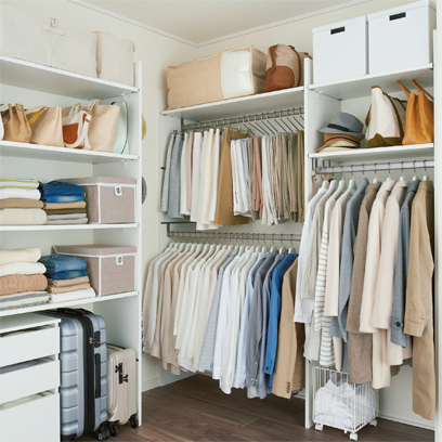 そこで便利なのが、棚やハンガーポール、引き出しなどを自由に組み合わせられるシステム収納のクローゼットです。