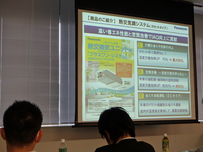 「換気と窓で暮らしは変わる!」のテーマで、YKKさんが「省エネ住宅の動向と窓の重要性」で講演され、パナソニックさんからは、「熱交換型換気システム」の説明があり、最後にショールームの見学でした。