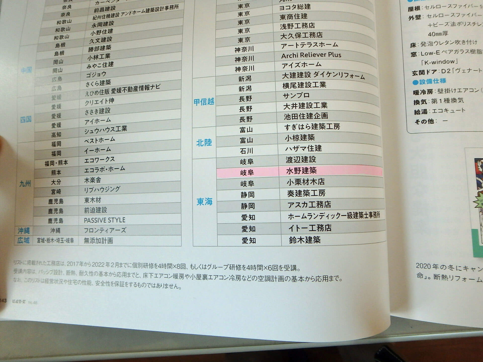 技術指導した建築会社さんが全国で84社あるそうです。143ページに工務店一覧がありますので、その写真をUPします。