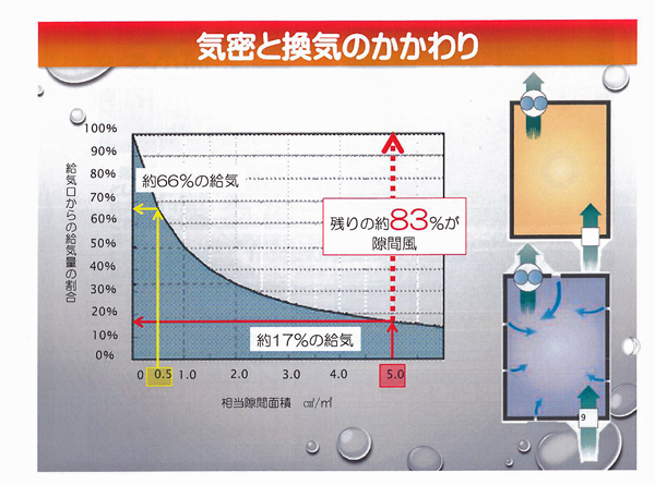 気密が悪いと部屋の中に入ってくる隙間風が83%もあるのです。