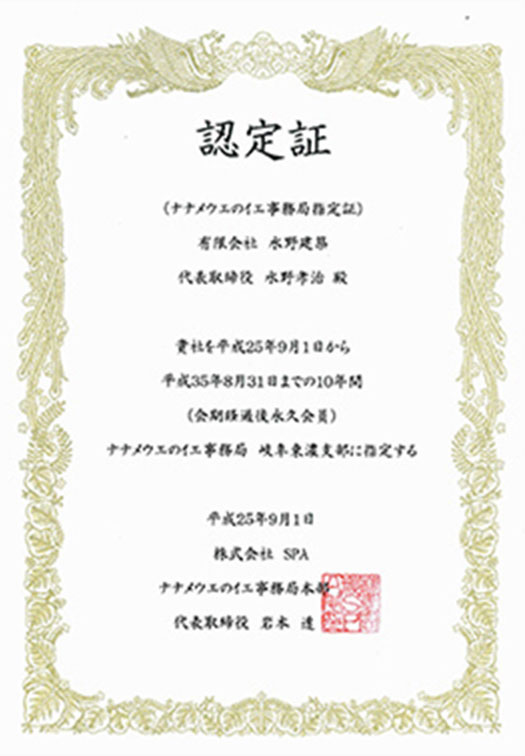 水野建築は、全国に3社しかない「ナナメウエのイエ事務局」の1社です。