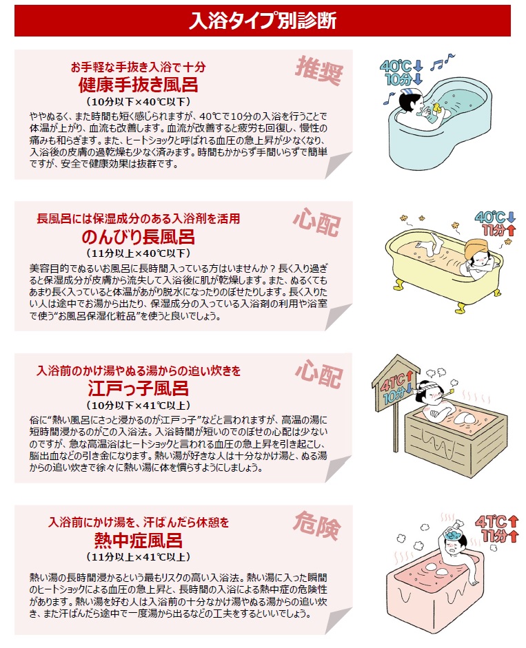 温度が低く入浴時間の短い「健康手抜き風呂」を