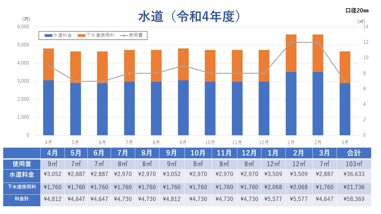 令和4年度の上水道+下水道の合計の料金が¥58,369円です