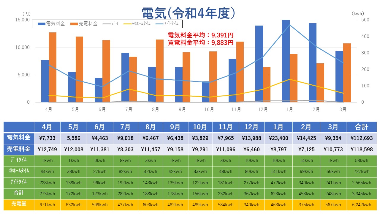 弊社では、お引き渡しをしたお客様から1年間の電気代、ガス代、水道代、下水道代等のデータを頂いています。