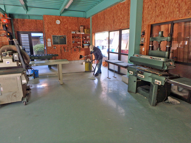 ■作業場の掃除中 埃を出さないように掃除機を使います。。