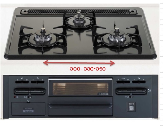 調理するガス台の中心からの寸法が、30センチと33センチと35センチが
