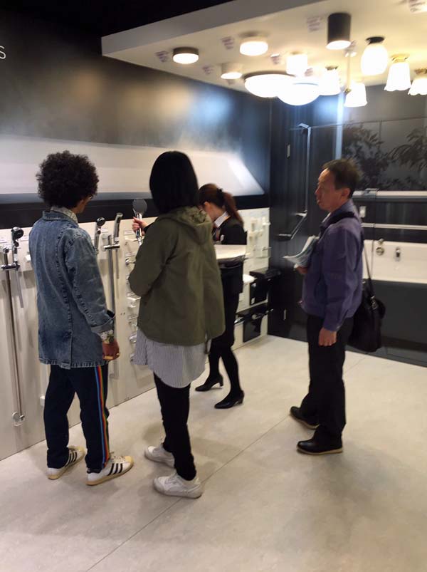 システムバスルームでは、展示してある浴槽に実際に入ってみて