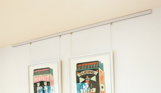 ピクチャーレールは、美術館などでよく使われている、絵画などを壁に飾るためのレールのことです。