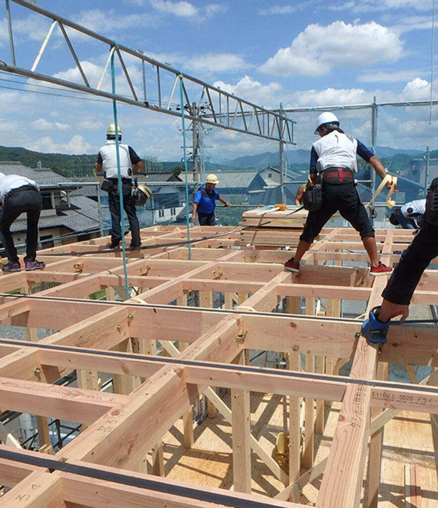 当社では「社員大工」が中心となって家づくりを行っており、地域では有数の技術者集団だと自負しております。社員大工のみで施工にあたっているため、チームワークがよく、和やかな雰囲気のもとで仕事ができます。