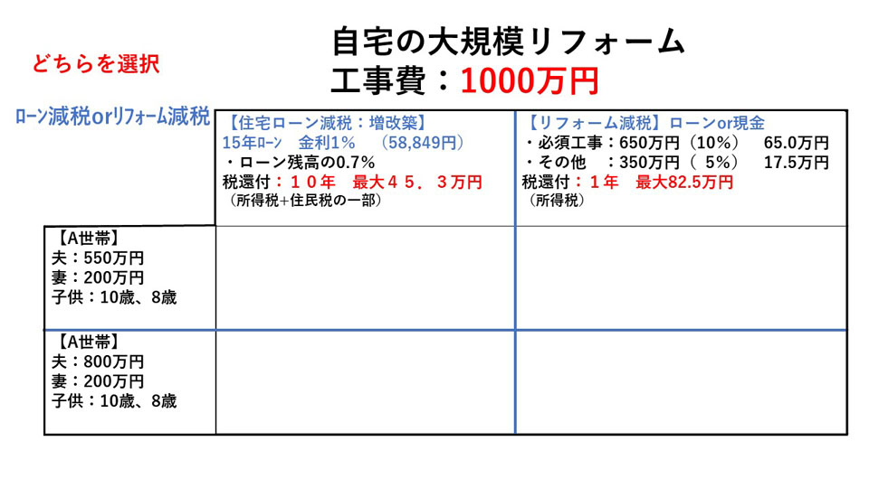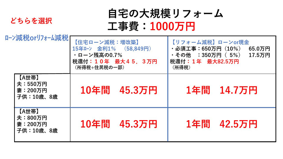 1000万円を自己資金で行い、リフォーム減税のことを知らなかったら45.3万円損をしていたことになります。