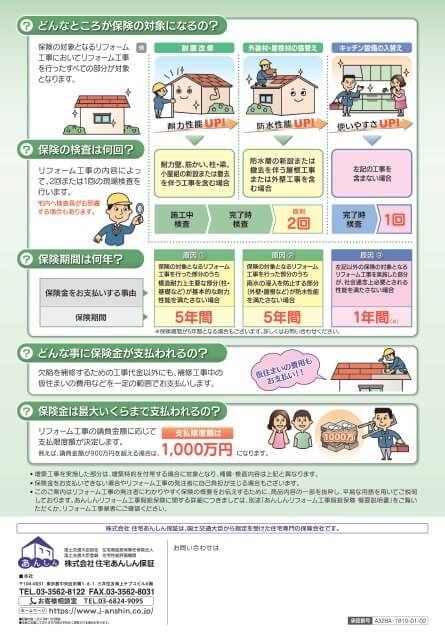 リフォーム瑕疵(かし)保険とは、リフォーム時の検査と保証がセットになった保険制度です。住宅専門の保険法人が保険を引き受けます。