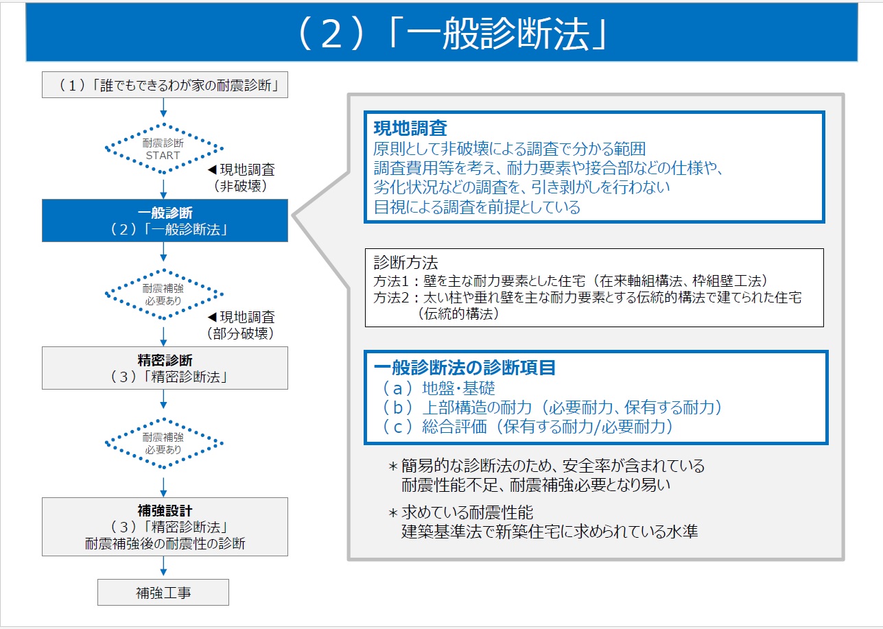 耐震診断では、建物の耐震性能を調査し、耐震基準と比較して判定します。