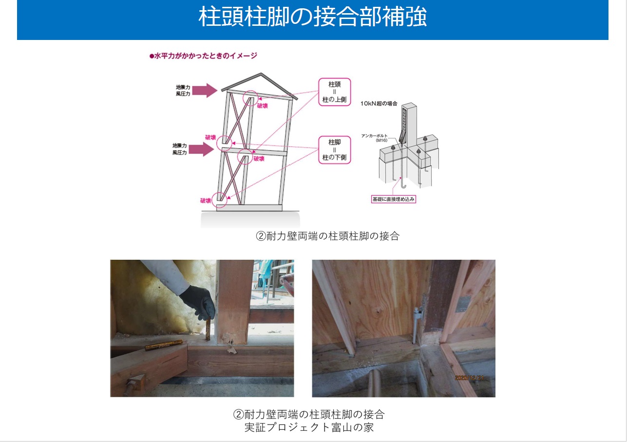 実際の補強設計を行う場合は、改修ケ所を少なくしたいので高倍率の耐力壁を配置したくなります。そうすると、基礎や接合部には不利になるので、気を付けて補強設計をしていきます。