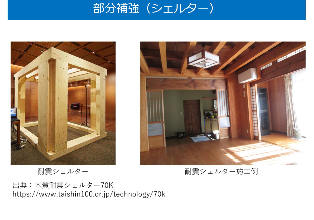 また、シェルターなどによる部分補強は、2階の真下の1階がおすすめです