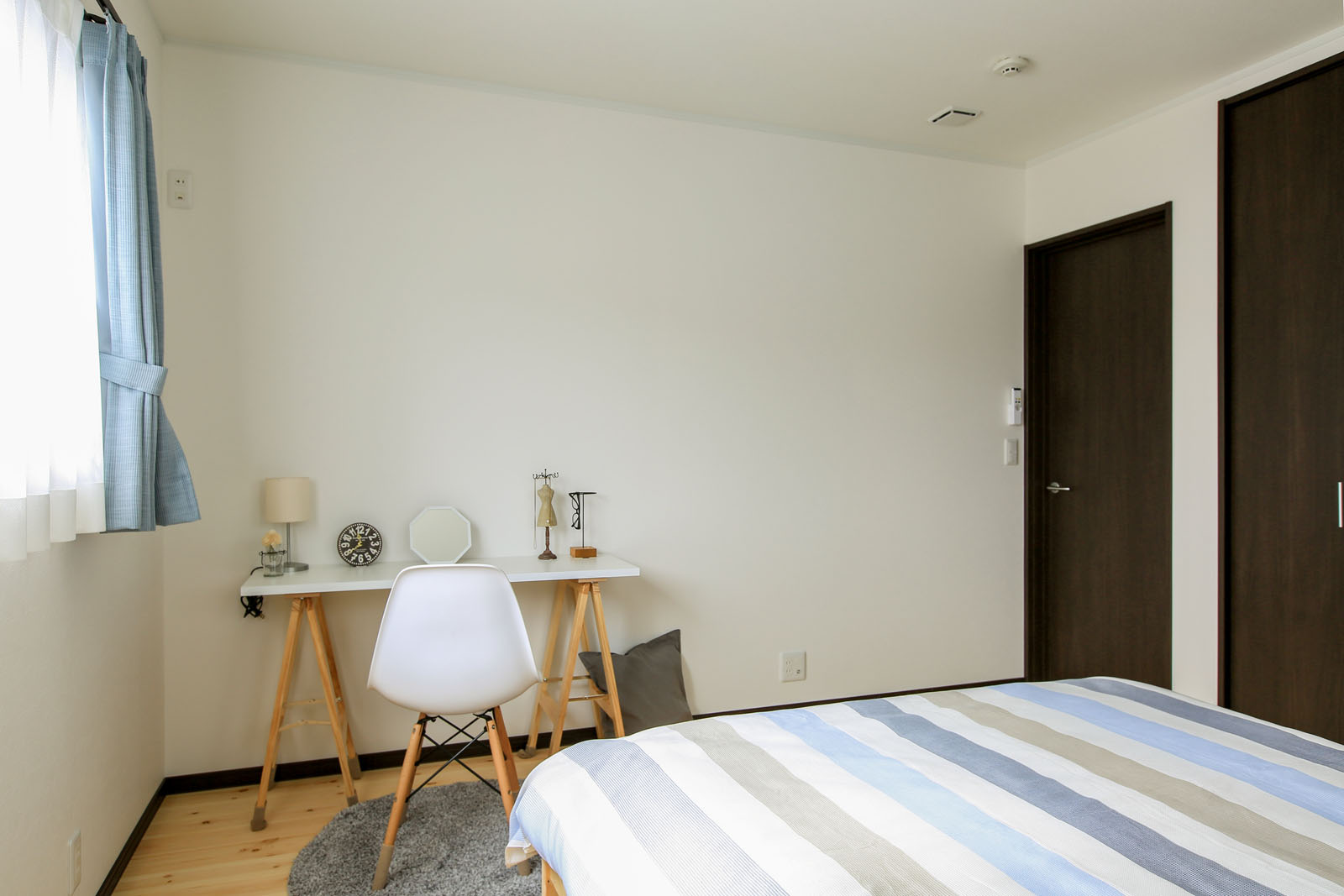 寝室は、集中したい空間づくりに最適です。寝室はもともとプライベートな空間なので、家族に邪魔されにくいというメリットがあります。