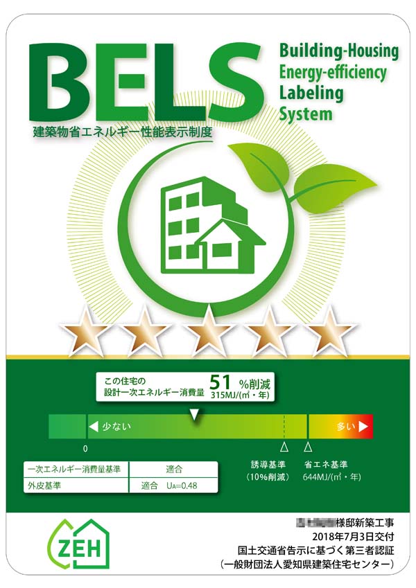 土岐市駄知町Y様邸 BELS評価書が届きました