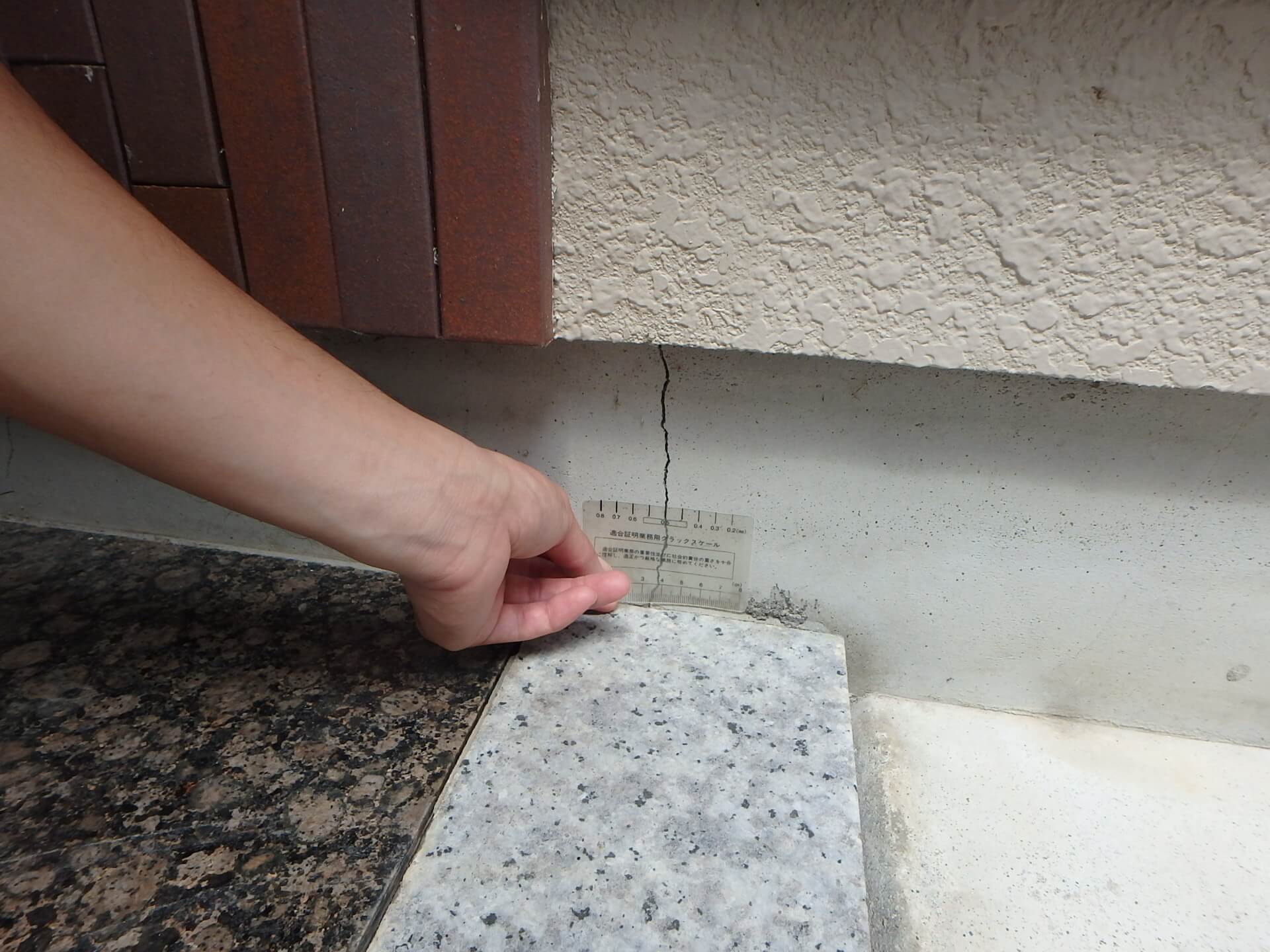 クラックスケールを、ひび割れの上に重ねて幅を測ります。