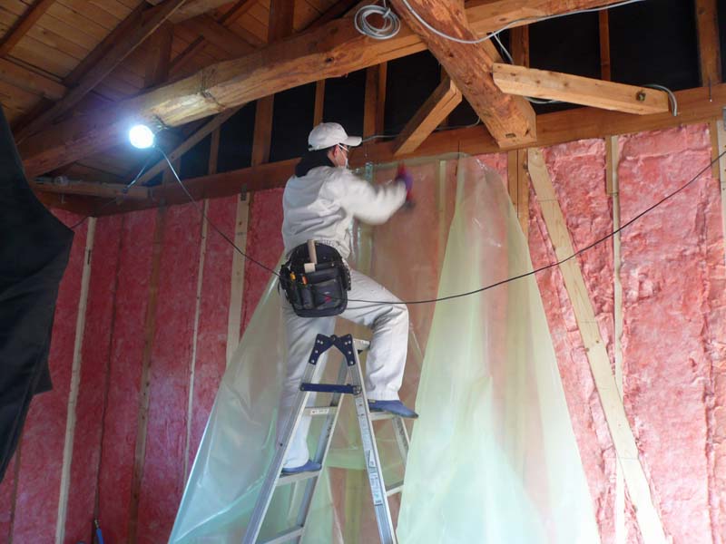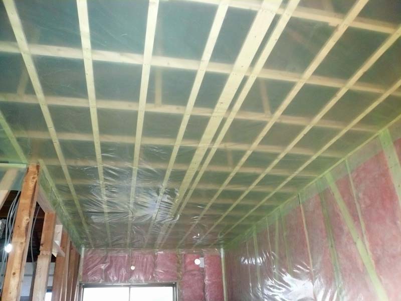 気密シートを張った後の室内の空間はとても暖かいです。