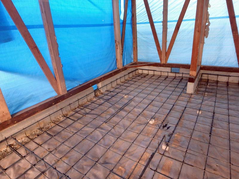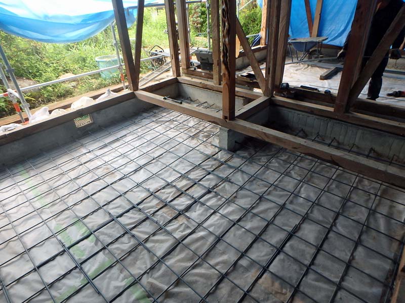 耐圧版(べた基礎のベースの部分)はもちろん鉄筋を組んで補強をします。