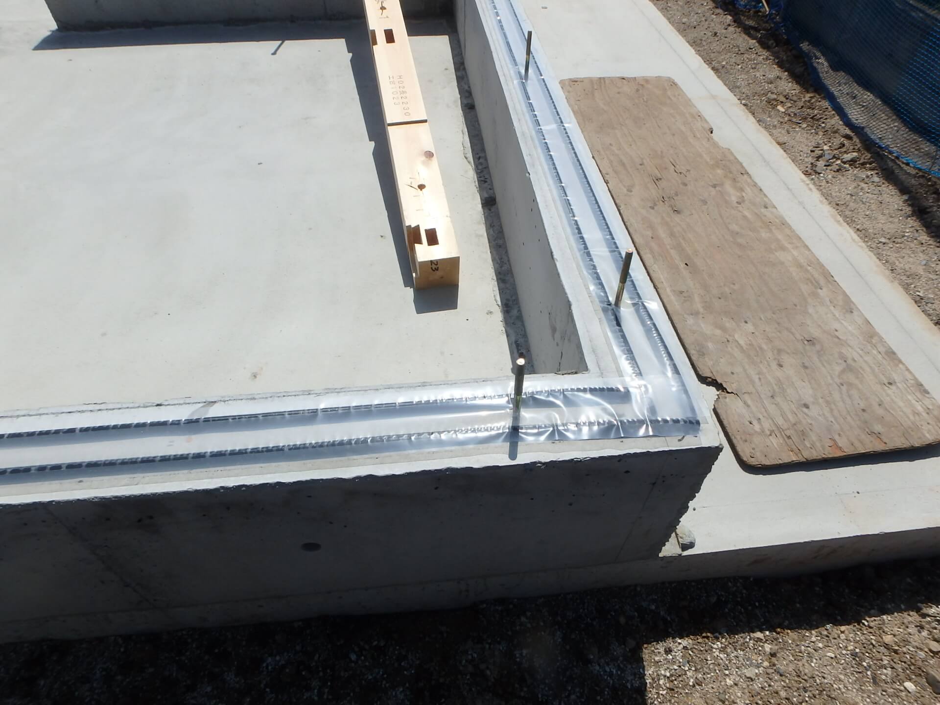 1つ目は合板の気密処理をするために気密テープを桁の上に取付けるので、合板を敷きこむ時に隙間が無いように密着させるようにします。