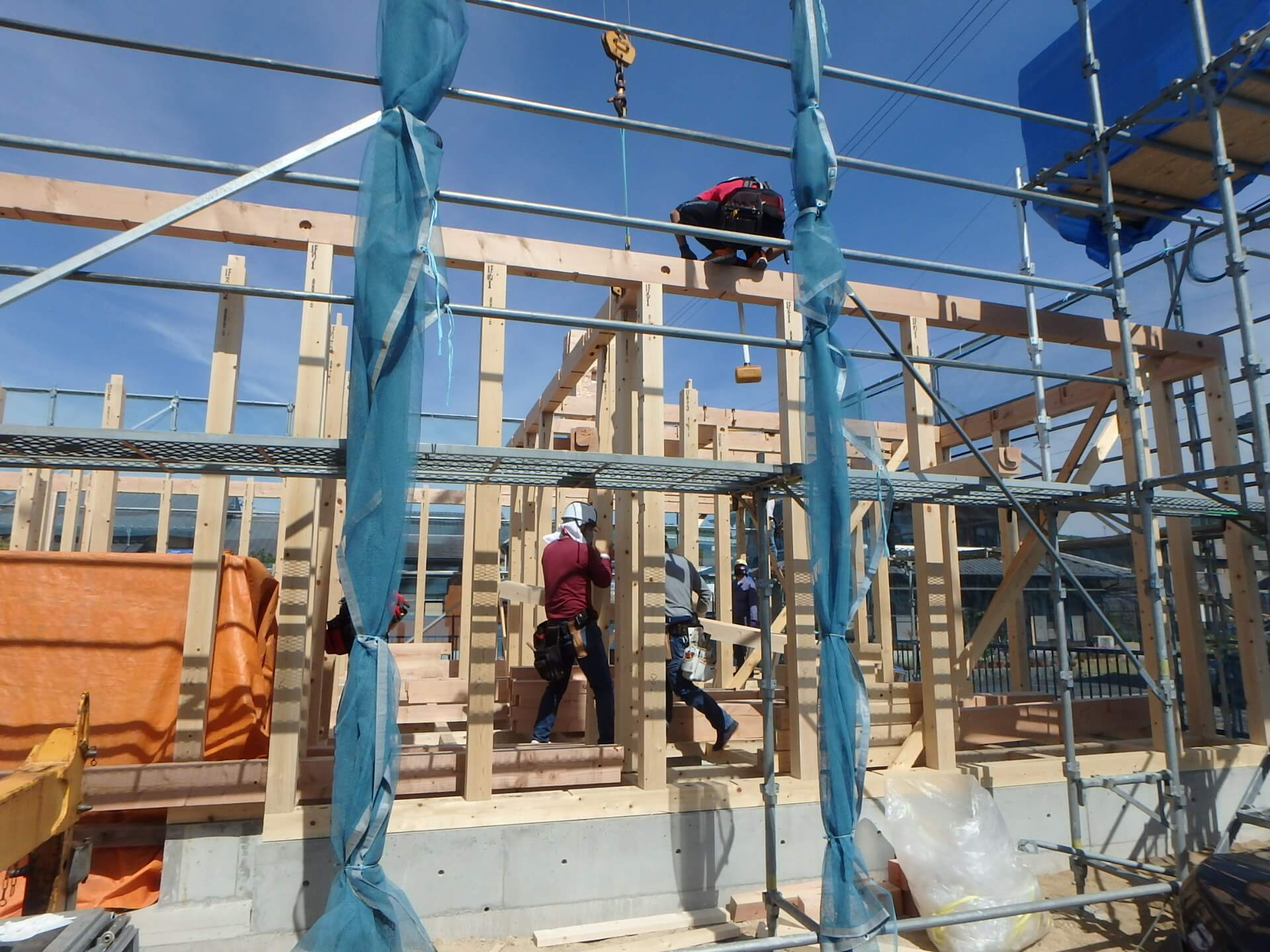 4月19日の月曜日から24日の土曜日まで雨に降られることもなく、土岐市大沼町Y様邸の建前が無事に終わりました。この季節では少し暑いくらいの天候でした。
